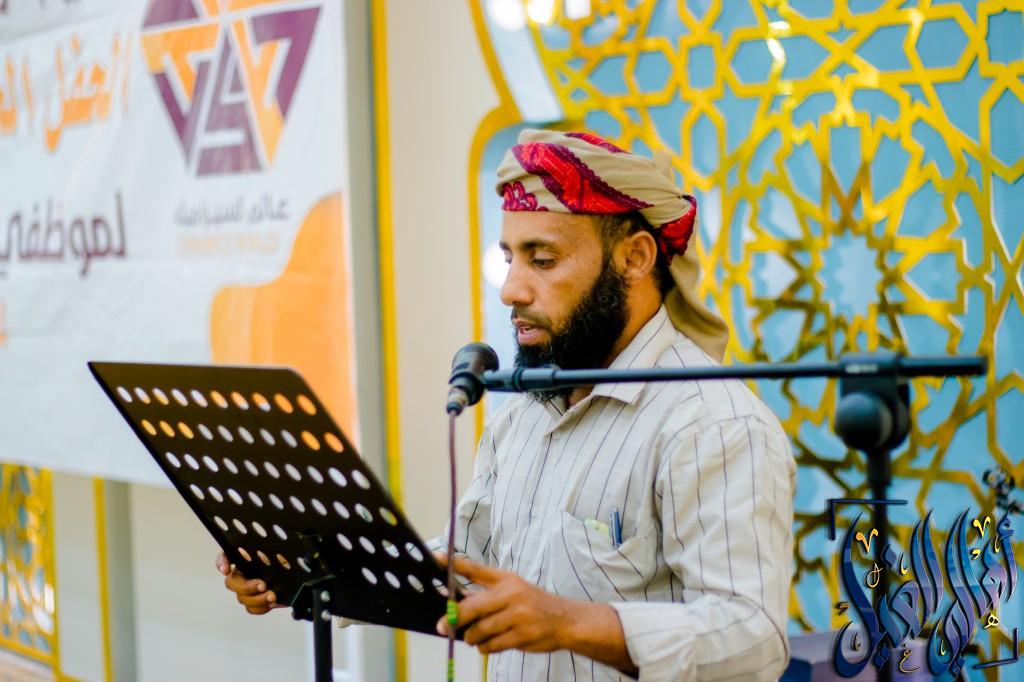 واستهل الحفل بآيات من الذكر الحكيم ومن ثم كلمة القاها المدير التنفيدي للمؤسسة سلمان أحمد السومحي رحب فيها بالحضور وشكرهم على مشاركتهم في هذه المناسبة السعيدة ، مشيد بجهود الموظفين وتفانيهم في خدمة المؤسسة ، مؤكداً أن هذا التكريم يعد تقليد سنوي لتكريم الموظفين المبرزين وتحفيزهم على المزيد من الإنتاج والجودة في العمل .