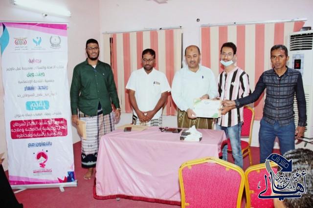 برعاية السلطة المحلية متمثلة في الدكتور عدنان محمد حمران المدير العام لمديرية غيل باوزير *جمعية التنمية الاجتماعية بغيل باوزير تقيم حفل تكريم منتدى رفقاء الطبي نظير جهودهم لإنجاح الحملة التوعوية ” يداً بيد نضع للسرطان حد “*