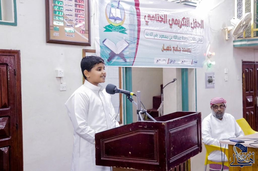 وشكر لإدارة مدرسة الامام الشافعي لمشاركة طلابهم حفل مدرسة ابن مسعود بمسجد جامع ذهبان