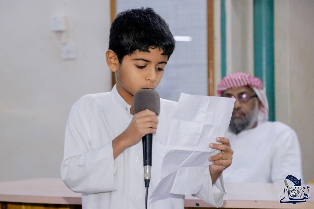 ضم هذا المشهد؛ [فقرة القرآن الكريم، وفقرةالحديث الشريف، وفقرة الخاطرة الدعوية، وفقرة المسابقة الثقافية التي يقودها الطالب. / علي خالد عبد]