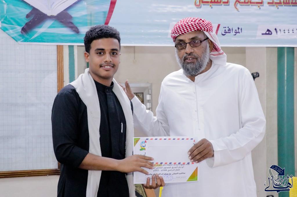 وفي الأخير كانت فقرة التكريم والتي تم فيها تكريم أوائل الطلاب النجباء لجميع حلقات المسجد والذي نحن بصدد ذكر أسمائهم تالياً،،،،