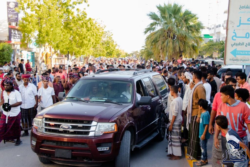 وكان في استقباله رئيس الهيئة التنفيذية للقيادة المحلية للمجلس الإنتقالي بالمديرية/ علي عوض بن قويره باوزير ونائب رئيس الهيئة/ محمد أحمد باقديم وعدد من الشخصيات الإعتبارية والنضالية.